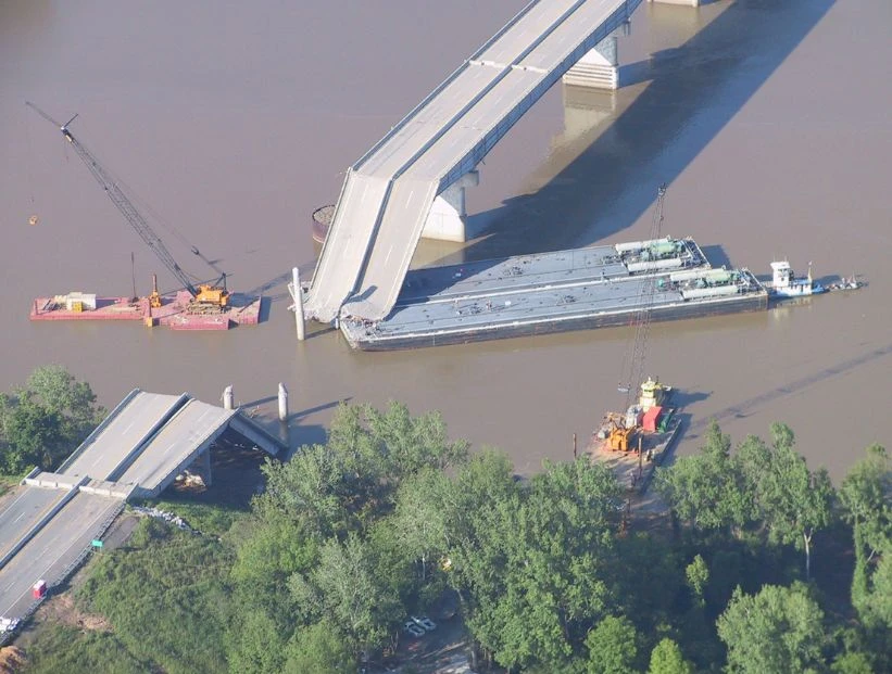 La historia del puente I-40 sobre el río Arkansas, cerca de la localidad de Webbers Falls, comenzó con su inauguración en 1967. Esta estructura era vital para el comercio y el turismo, ya que formaba parte de la Interestatal 40, una de las arterias principales que atraviesa Estados Unidos de costa a costa. Sin embargo, su destino cambió trágicamente el 26 de mayo de 2002. A las 7.45, un remolcador que empujaba dos barcazas perdió el control y chocó violentamente contra uno de los pilares de soporte del puente.