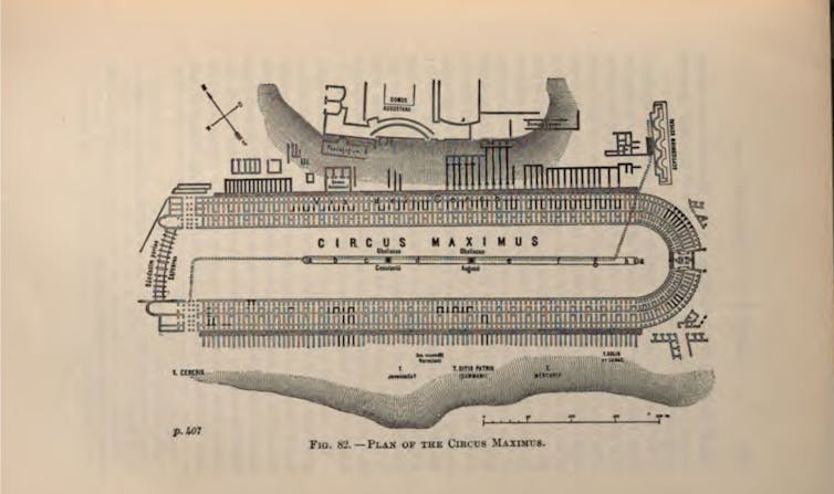 Las carreras se celebraban en el Circo Máximo. Era el edificio de mayores dimensiones de Roma y en él cabían cerca de 200 000 espectadores. En su arena se celebraban carreras de caballos, venationes o caza de animales, y luchas de gladiadores. Pero lo que más espectadores atraía eran las carreras de carros conducidas por aurigas.